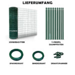 Zaun-Komplettset: Schweißgitter grün, T-Profil Zaunpfosten und Zubehör