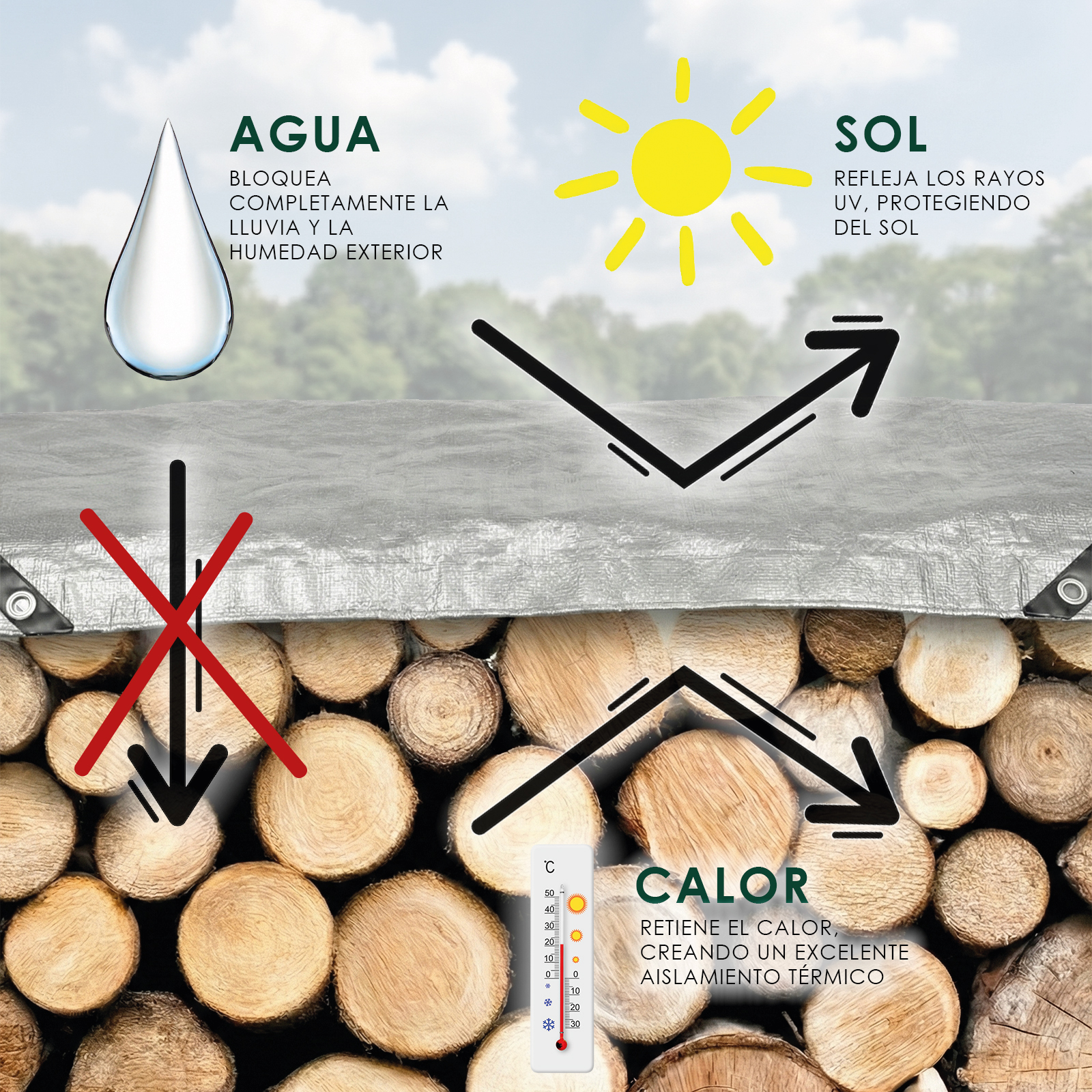 • FUNCIONALIDAD: Ideal para cubrir y proteger muebles de jardín, leña, automóviles, embarcaciones, piscinas, obras y equipos frente a la lluvia, el sol, el viento, el polvo y la suciedad en cualquier estación.