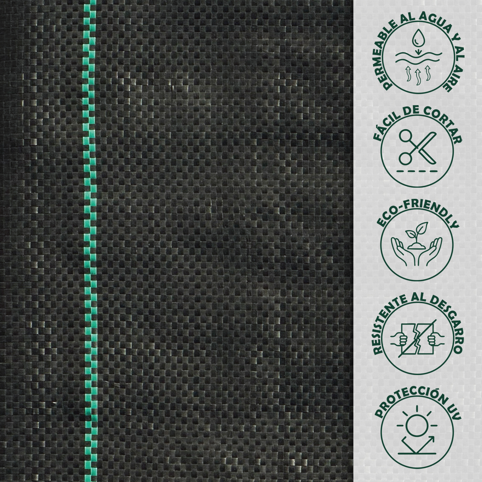 • FUNCIONALIDAD: Barrera antihierbas ideal para huertos, parterres, jardines e invernaderos. Previene eficazmente el crecimiento de las malas hierbas, reduciendo el uso de herbicidas químicos, y favorece la transpiración del terreno manteniendo las raíces bien oxigenadas.