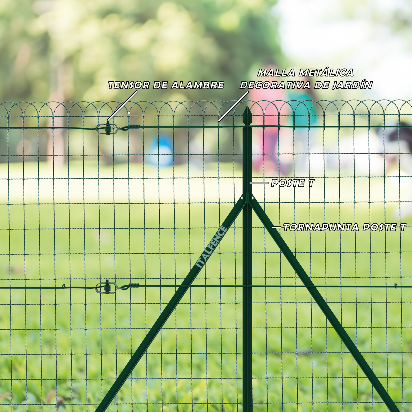 La malla ornamental, de fácil instalación, se caracteriza por su elegancia y belleza, y se utiliza principalmente para cercar parterres y jardines.