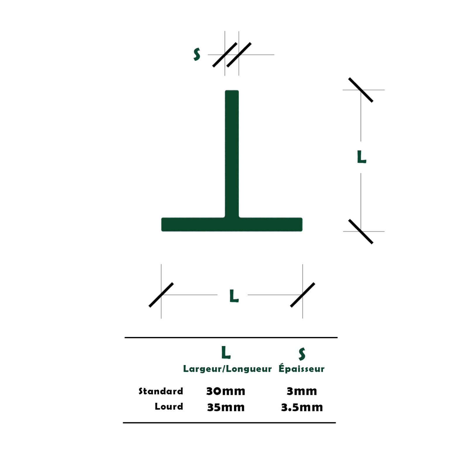 - CARACTÉRISTIQUES TECHNIQUES: Matériau: fer plastifié; Section: en T; Couleur PVC: vert (RAL6005)