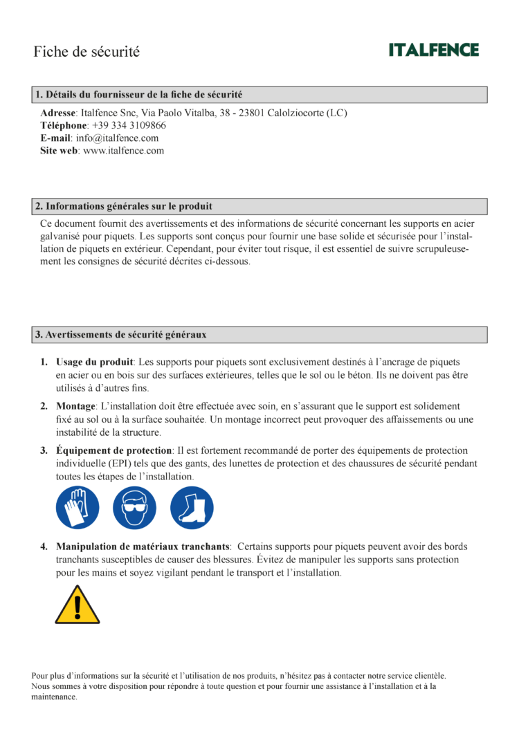 FICHE DE SÉCURITÉ