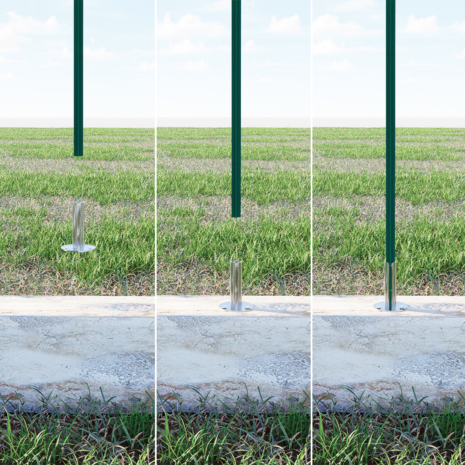 L’emboîtement haut de 15 cm permet d’insérer facilement le piquet en fer en T (30x30x3 mm ou 35x35x3,5 mm), offrant une base solide pour la clôture sur murs ou sols, sans besoin de soudure ni de modifications.