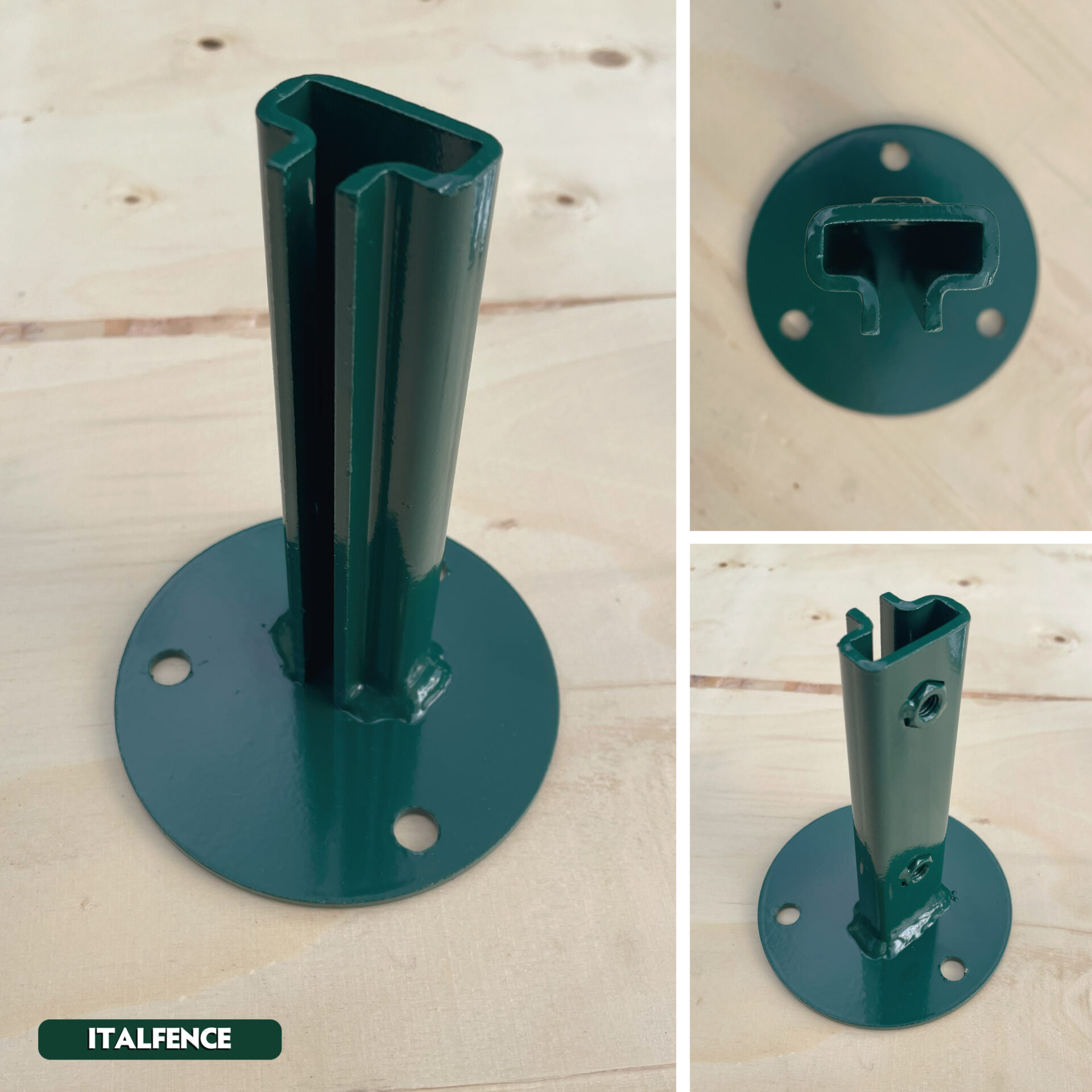 • CONTENU : Platine circulaire en fer à fixer avec chevilles complète de 3 trous pour accueillir des chevilles Ø8mm (non incluses) et emboîtement haut 15 cm avec 2 boulons galvanisés 8x20mm avec écrous pour fixation du piquet (inclus).