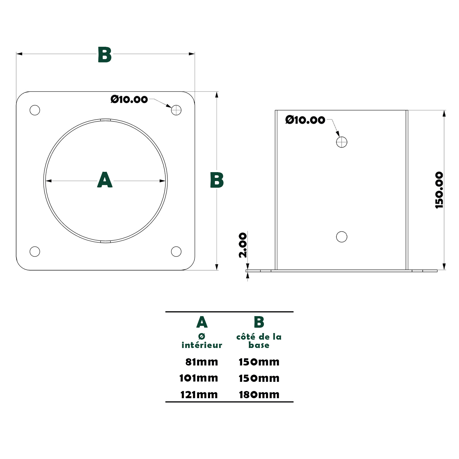 Le support de poteau en bois rond est une solution idéale pour des installations stables et durables. Fabriqué en fer galvanisé à chaud avec une épaisseur de 2,0 mm et une hauteur de 150 mm, il offre robustesse et résistance aux intempéries.