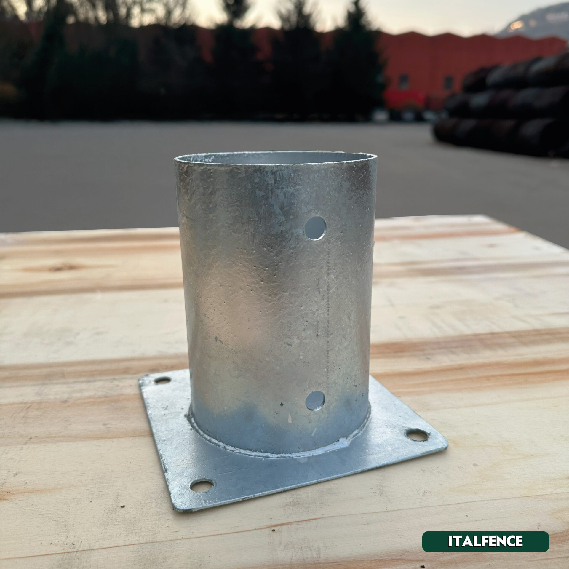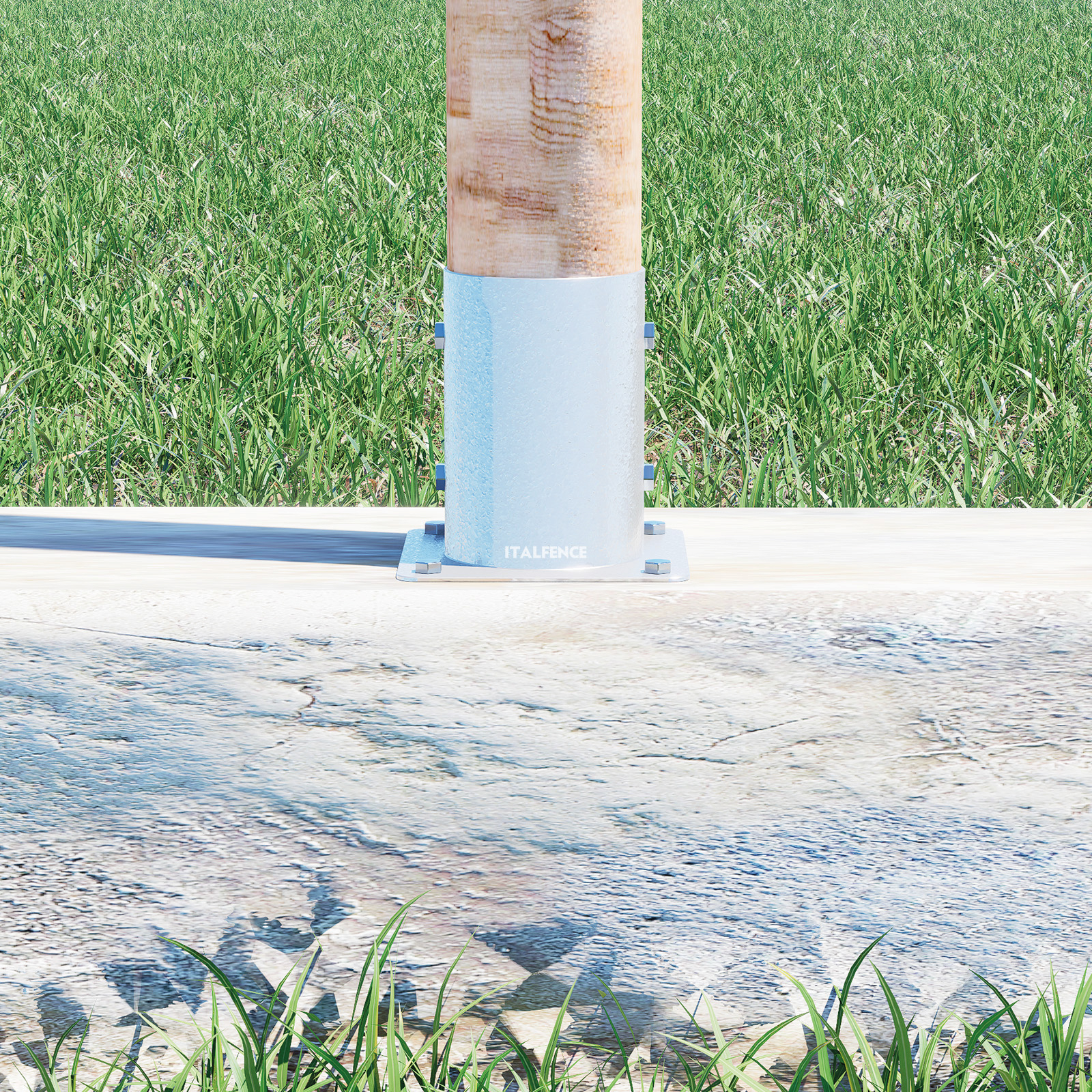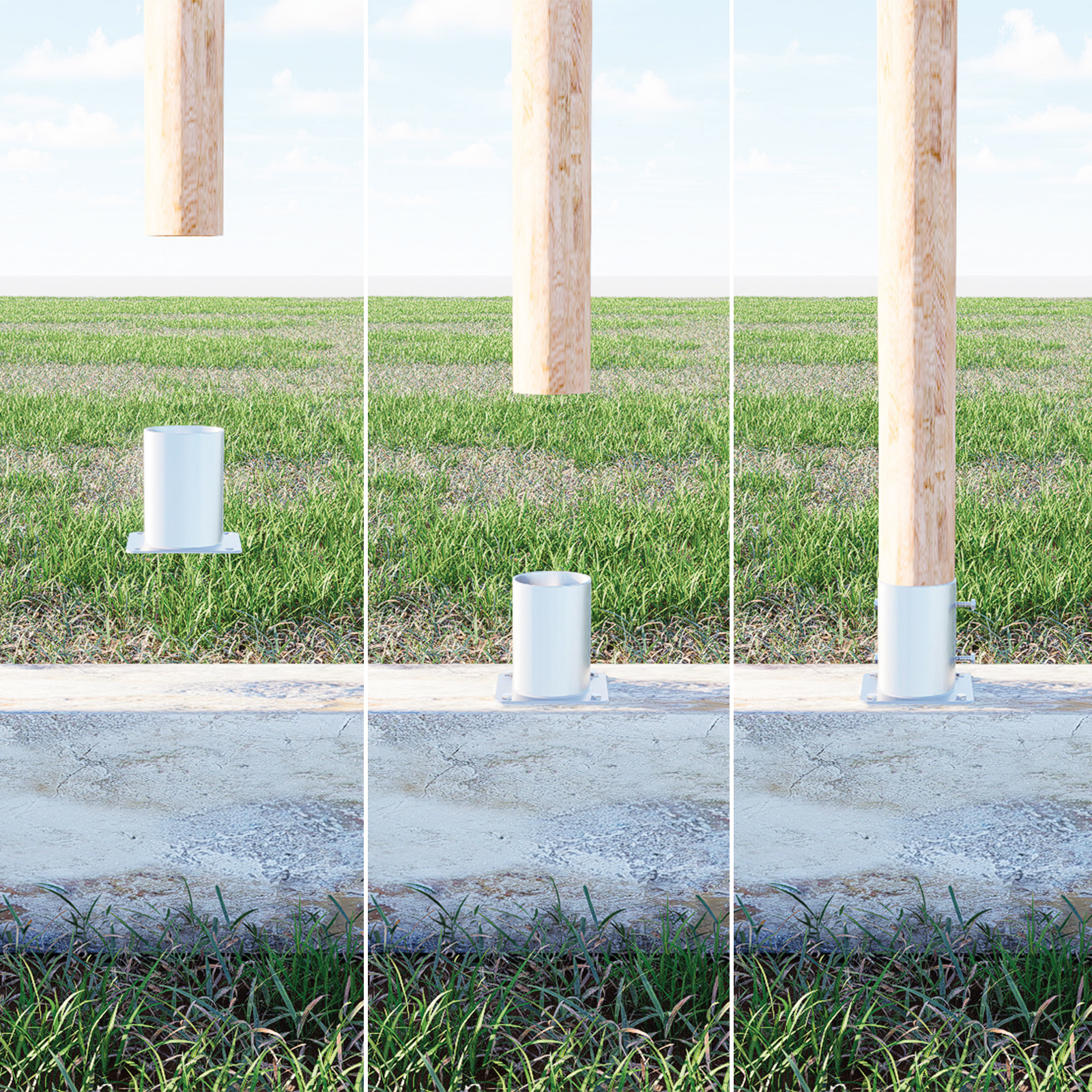 Compatible avec les poteaux ronds en bois, il permet une installation flexible sans modifications permanentes, facilitant ainsi d’éventuels retraits ou déplacements. Son design assure une fixation simple sur des surfaces comme des murets, nécessitant uniquement l’insertion du poteau dans l’emboîtement prévu à cet effet.