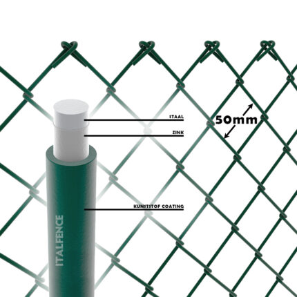 - TECHNISCHE KENMERKEN: Materiaal: Geplastificeerd ijzer; Ronde sectie met “O”; PVC kleur: Groen (RAL6005).