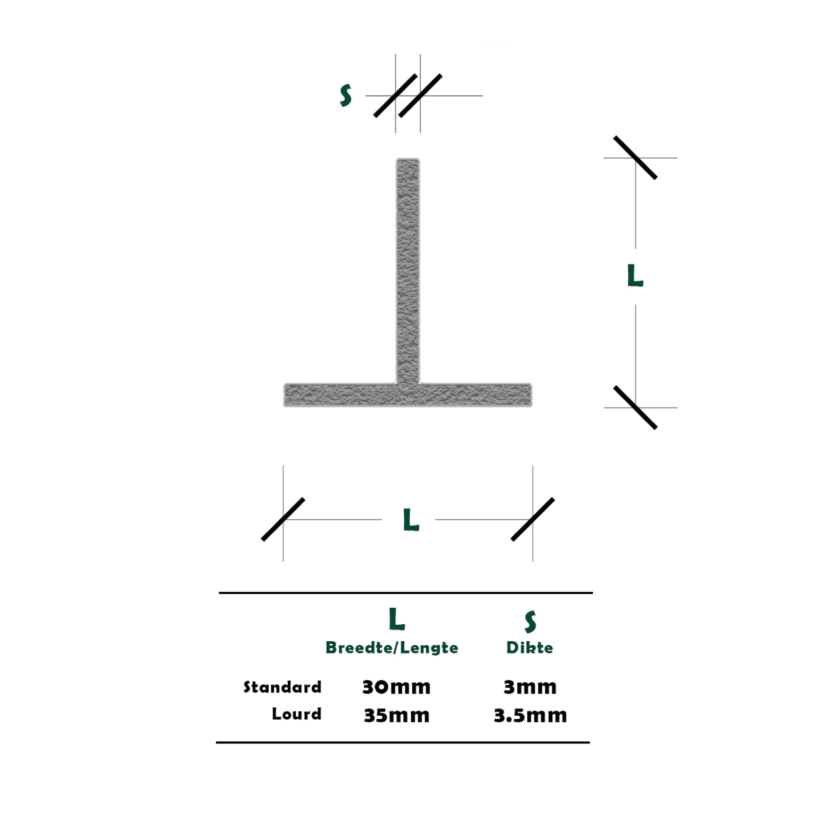 • TECHNISCHE KENMERKEN: Materiaal: Verzinkt ijzer. T-sectie.