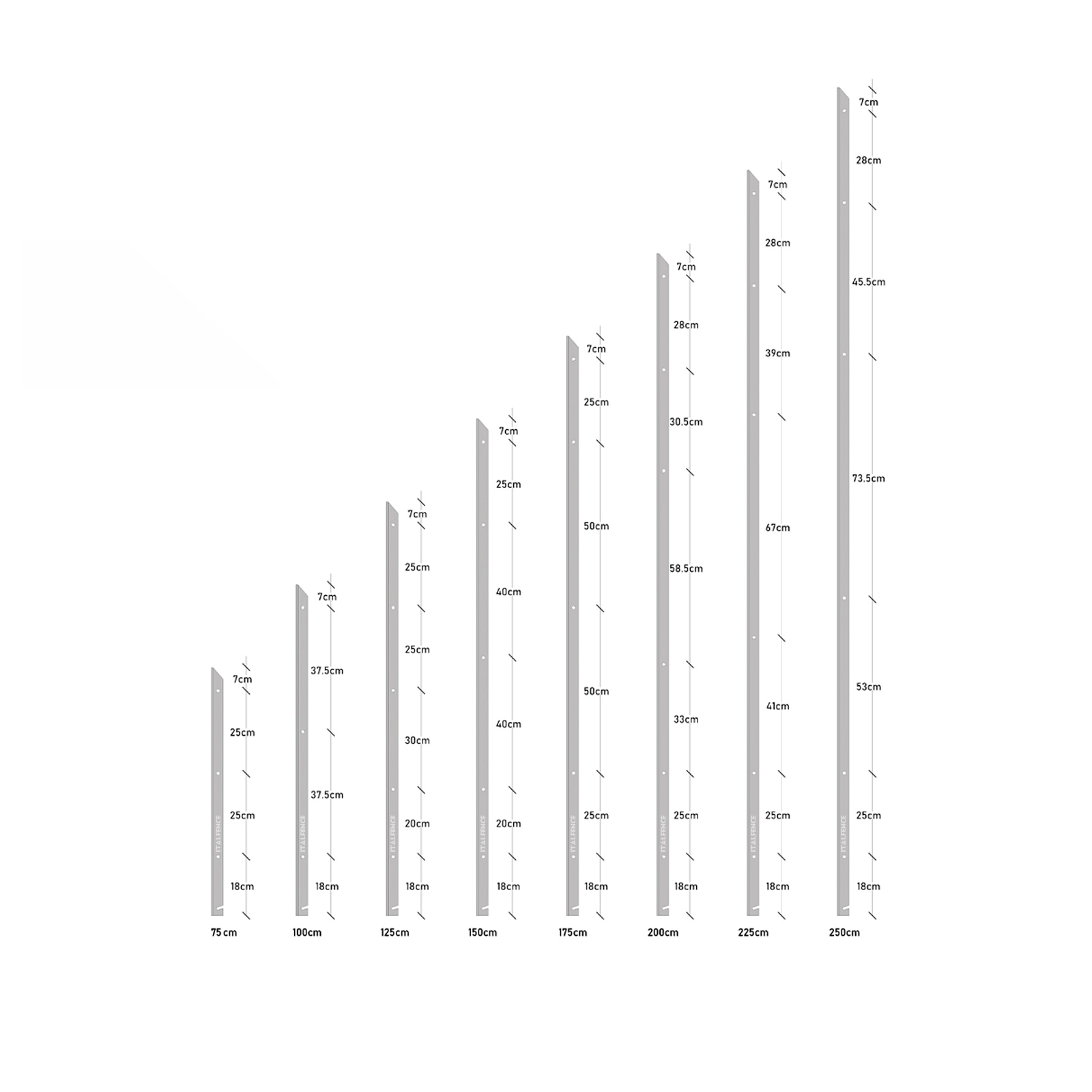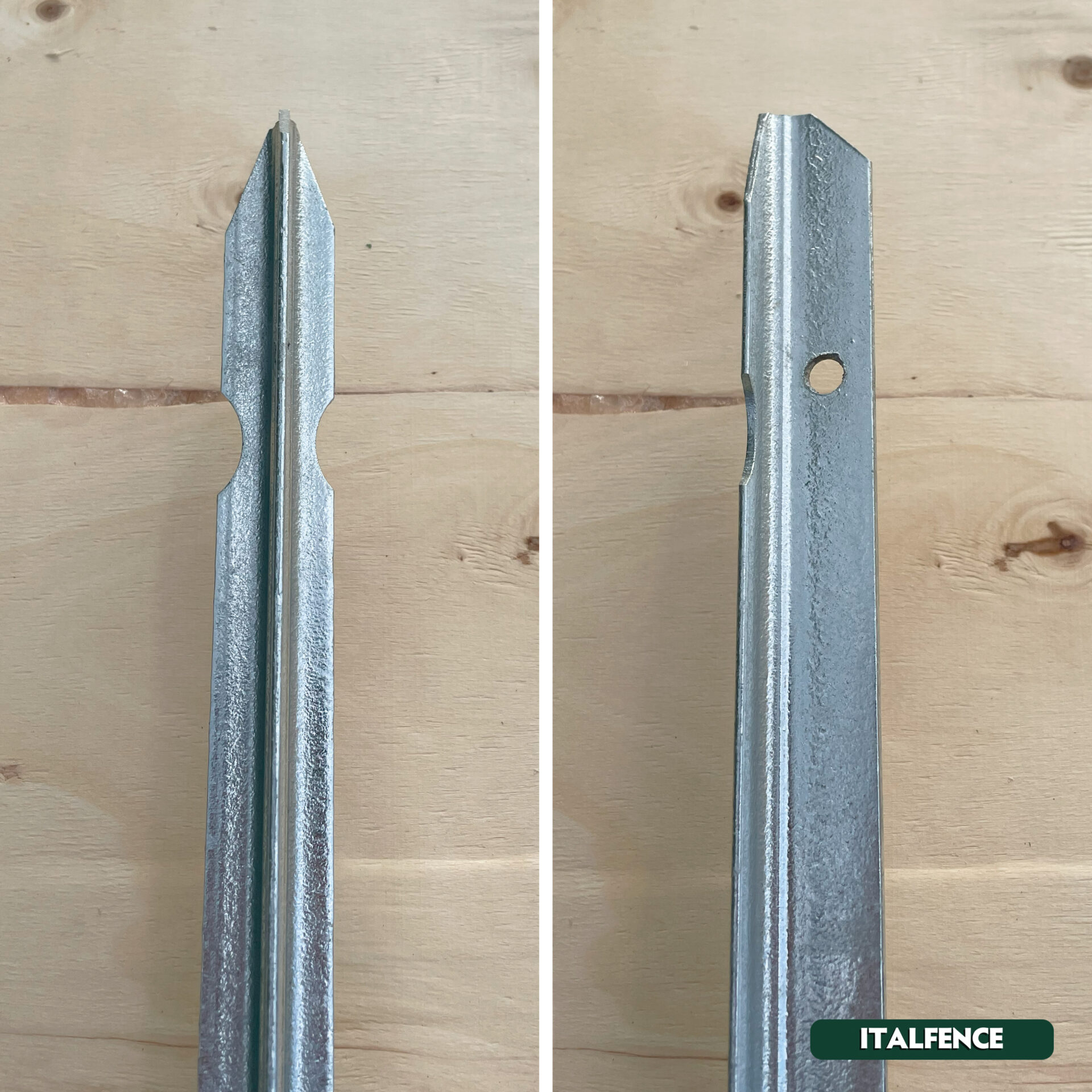 • VARIANTEN: Ons assortiment maten voor de gepalstificeerde T-palen omvat: 75cm, 100cm, 125cm, 150cm, 175cm en 200cm, en biedt oplossingen voor elke behoefte. We bieden de mogelijkheid om de palen in verpakkingen van 5 of 10 stuks te kopen. We hebben zowel standaardpalen (30x30x3mm) als zware palen (35x35x3.5mm).